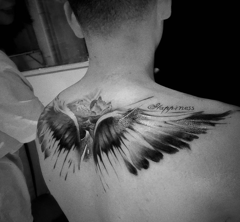• 纹身吧推荐的披肩图腾半胛纹身图案作品展示