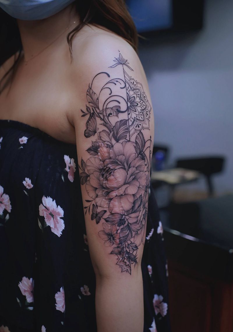 • 女性大花胸纹身_43张霸气漂亮的女性大花胸纹身图案作品
