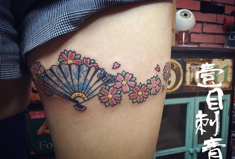 当前位置: 首页 >广东省深圳市纹身店-YIMU纹身图案>扇子樱花纹身图片_腿部成品欧美鬼神纹身图案