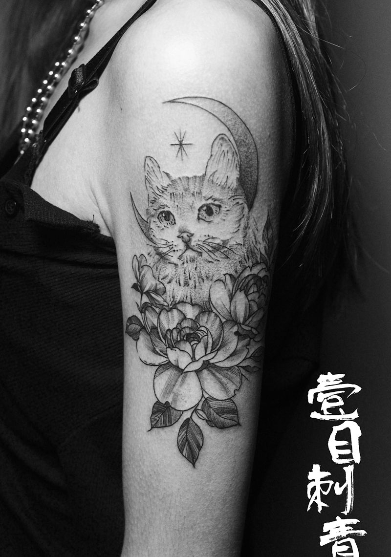 当前位置: 首页 >广东省深圳市纹身店-YIMU纹身图案>原创猫咪花花纹身图片_手臂点刺小清新猫花纹身图案