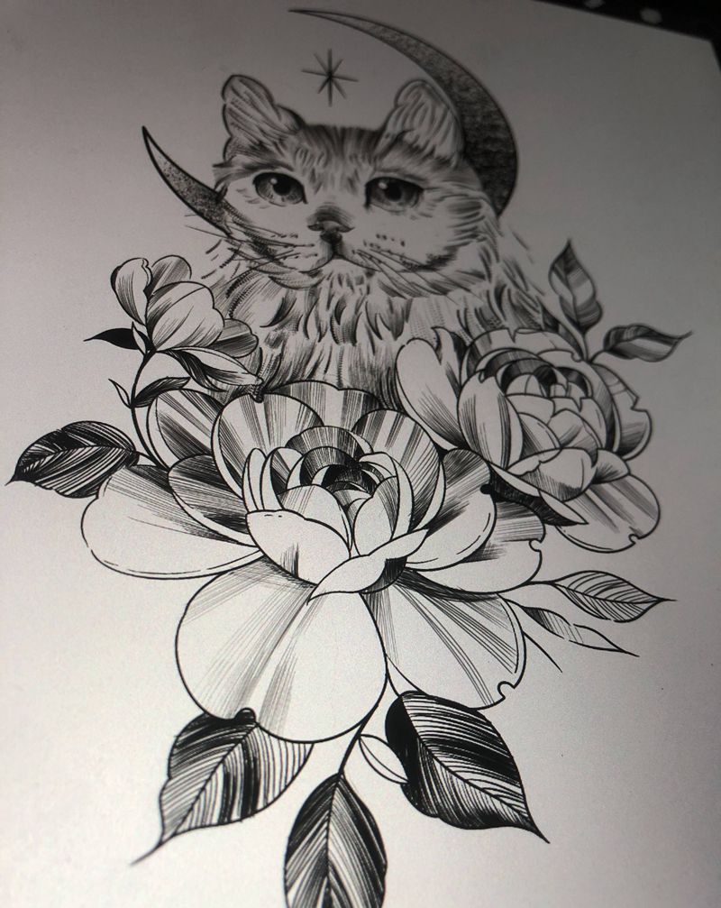 当前位置: 首页 >广东省深圳市纹身店-YIMU纹身图案>原创猫咪花花纹身图片_手臂点刺小清新猫花纹身图案