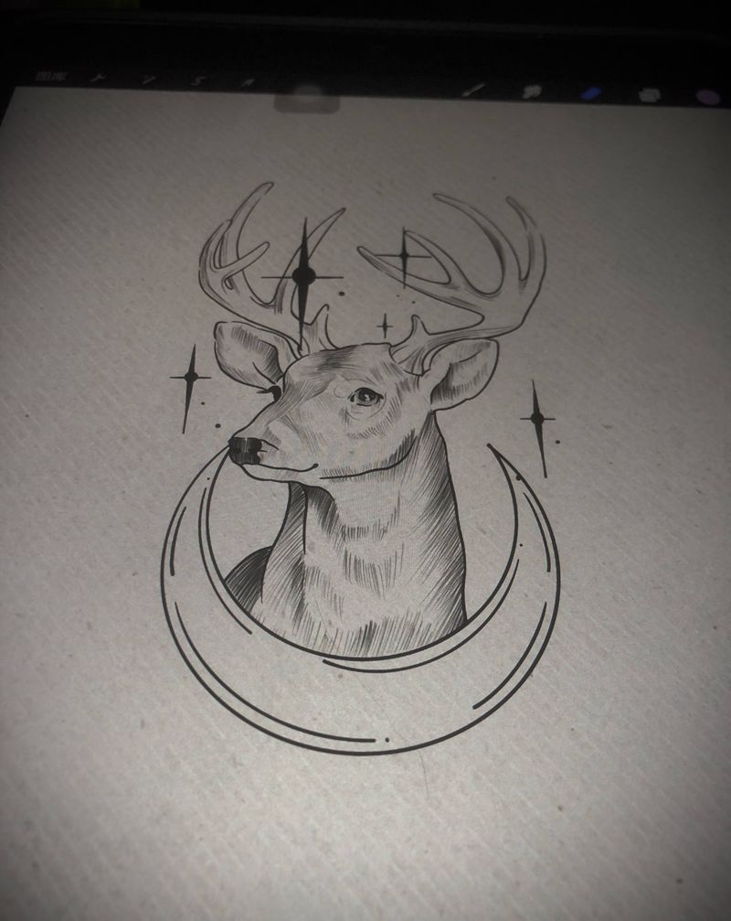 原设鹿纹身图片_手臂点刺鹿月亮纹身图案