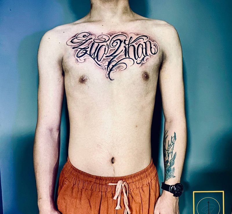 当前位置: 首页 >广东省深圳市纹身店-南北刺青工作室纹身图案>花体字纹身图片_胸部花体字纹身图案