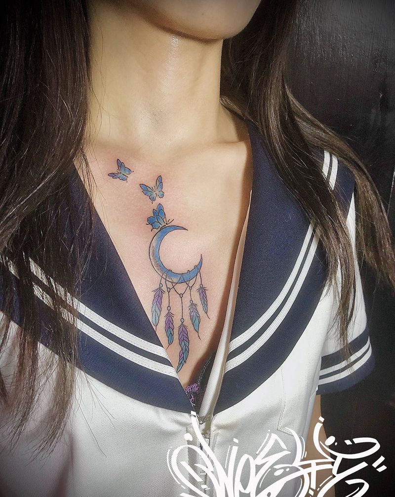 当前位置: 首页 >广东省深圳市纹身店-YIMU纹身图案>捕梦网纹身图片_胸部Old School纹身图案