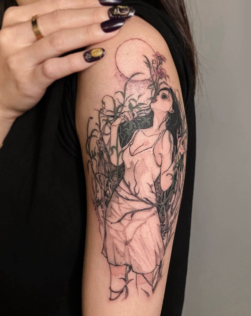 • 女性大花胸纹身_43张霸气漂亮的女性大花胸纹身图案作品