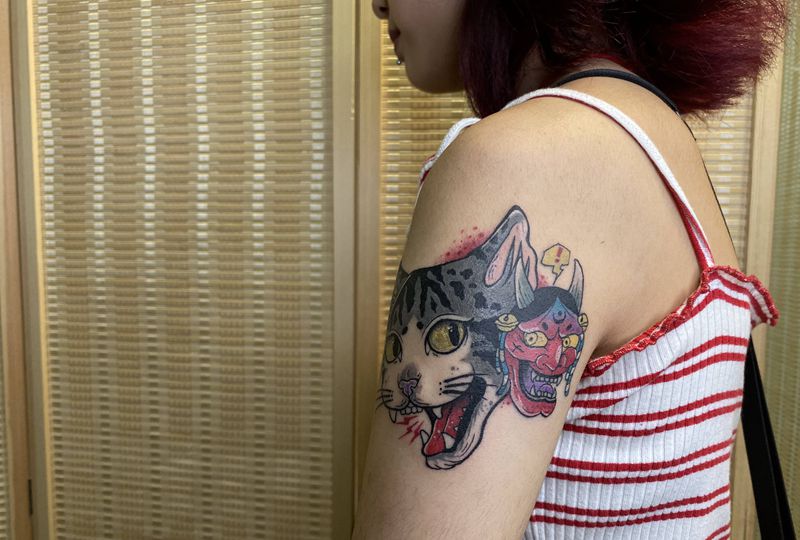 当前位置: 首页 >广东省深圳市纹身店-南北刺青工作室纹身图案>般若与猫纹身图片_手部纹身图案