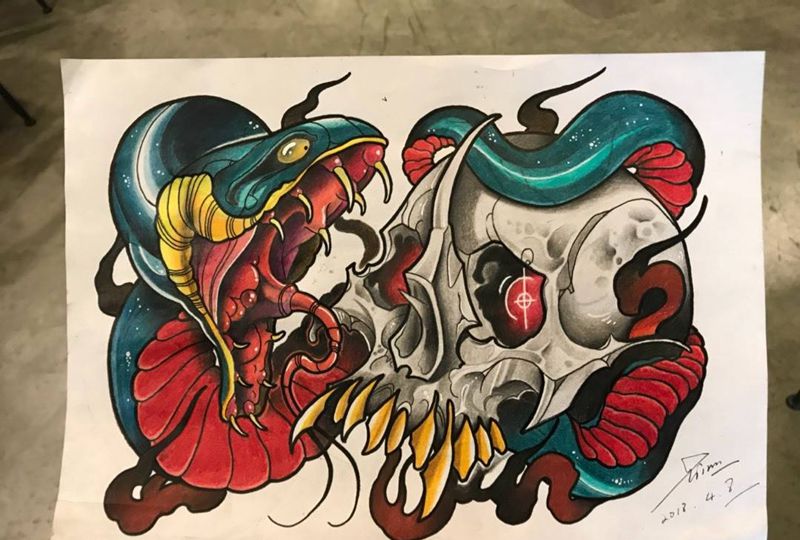 当前位置: 首页 >广东省深圳市纹身店-S.E.S就叫森域·刺青Studio纹身图案>New school手稿纹身图片