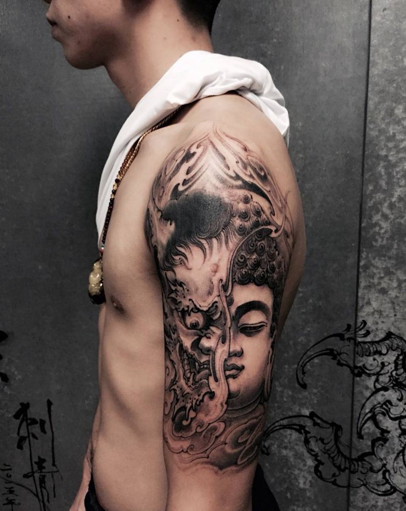 • 纹身吧推荐的披肩图腾半胛纹身图案作品展示