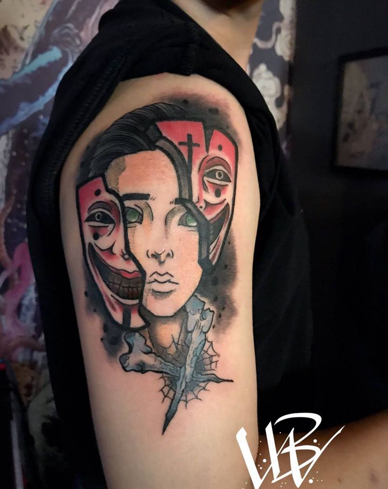 当前位置: 首页 >广东省深圳市纹身店-HL-TATTOO纹身图案>面具男纹身图片_手臂New School纹身图案