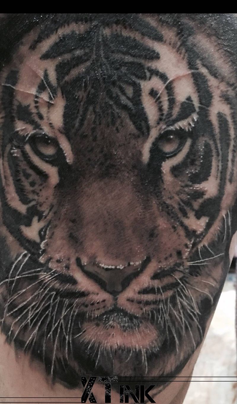 当前位置: 首页 >广东省深圳市纹身店-XT INK纹身图案>黑灰写实老虎纹身图片