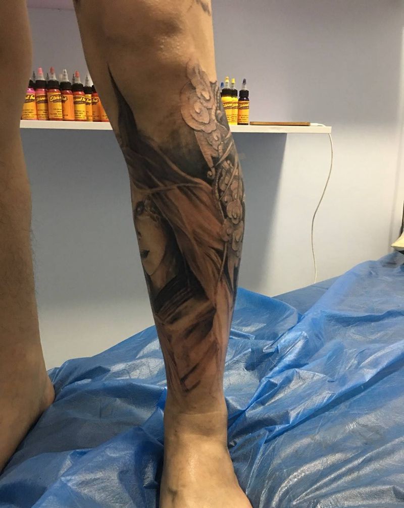 • T网红王老大花腿龙纹身图片_腿部新传统纹身图案