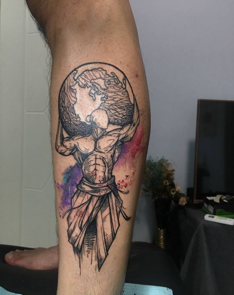 • T包小腿吹火男+阿多福纹身图片_腿部老传统新传统吹火男阿