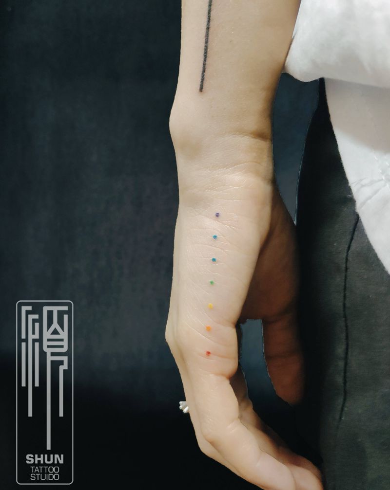 彩虹点点+直线纹身图片_手部手臂几何纹身图案