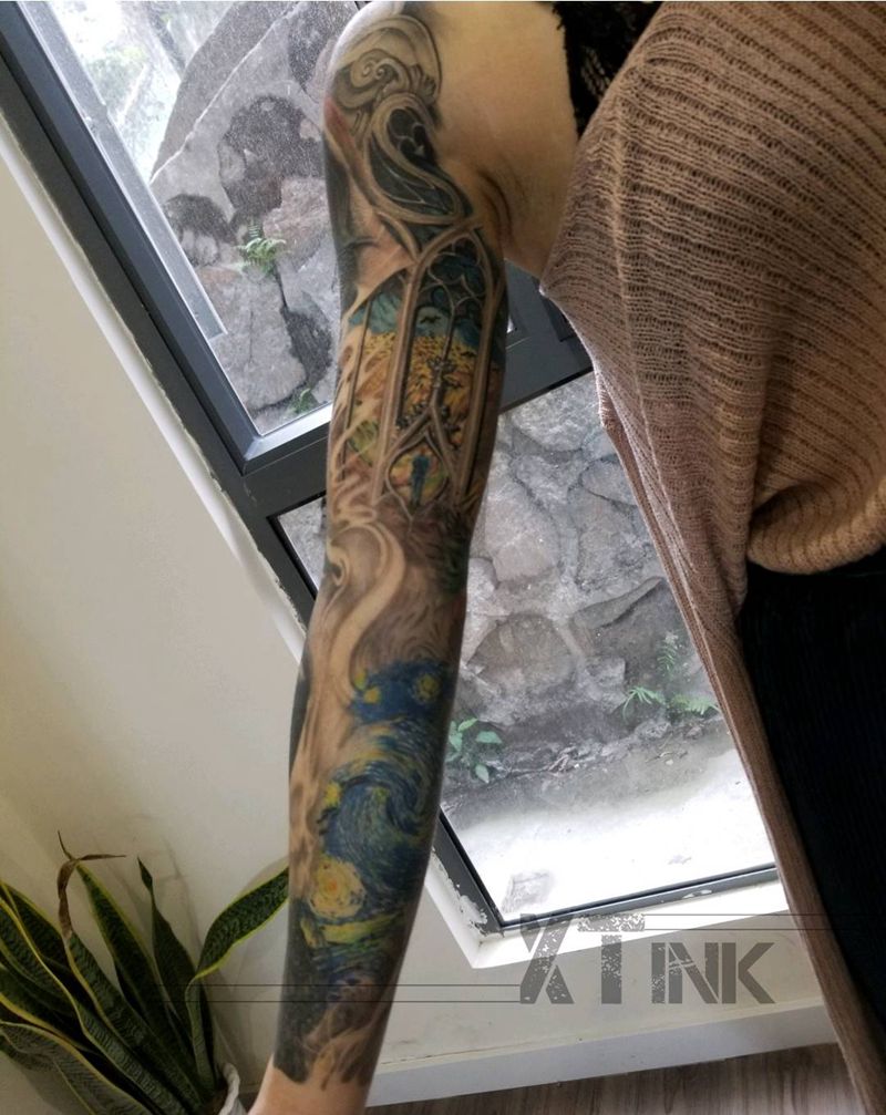 当前位置: 首页 >广东省深圳市纹身店-XT INK纹身图案>写实人像+梵高抽象油画纹身图片