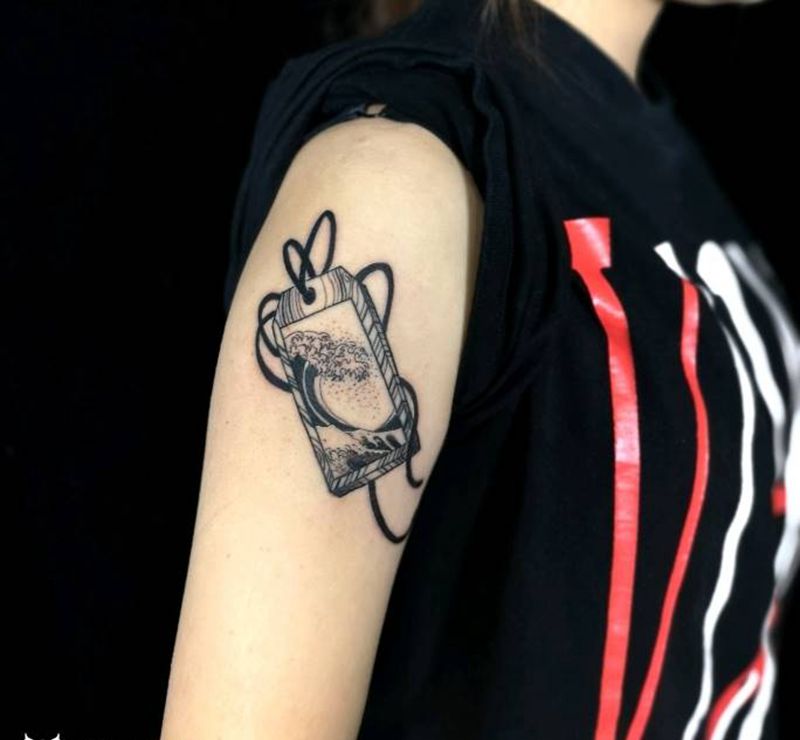 日式浪花平安符纹身图片_手臂手部New School老传统福牌符牌纹身图案