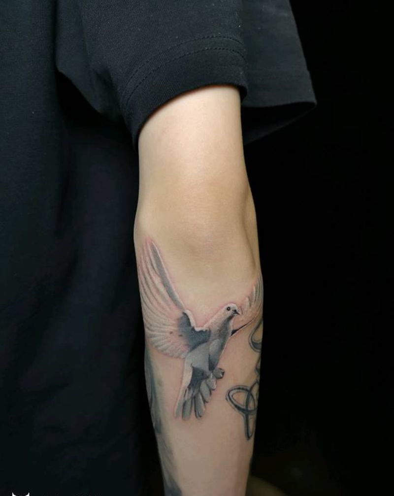 欧美写实鸽子纹身图片_手臂手部欧美写实鸟动物鸽子纹身图案