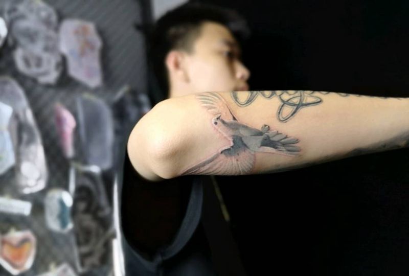 当前位置: 首页 >广东省深圳市纹身店-写实刺青处纹身图案>欧美写实鸽子纹身图片_手臂手部欧美写实鸟动物鸽子纹身图案