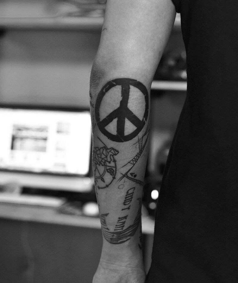 拼接手臂纹身图片_手臂欧美清新几何字符纹身图案