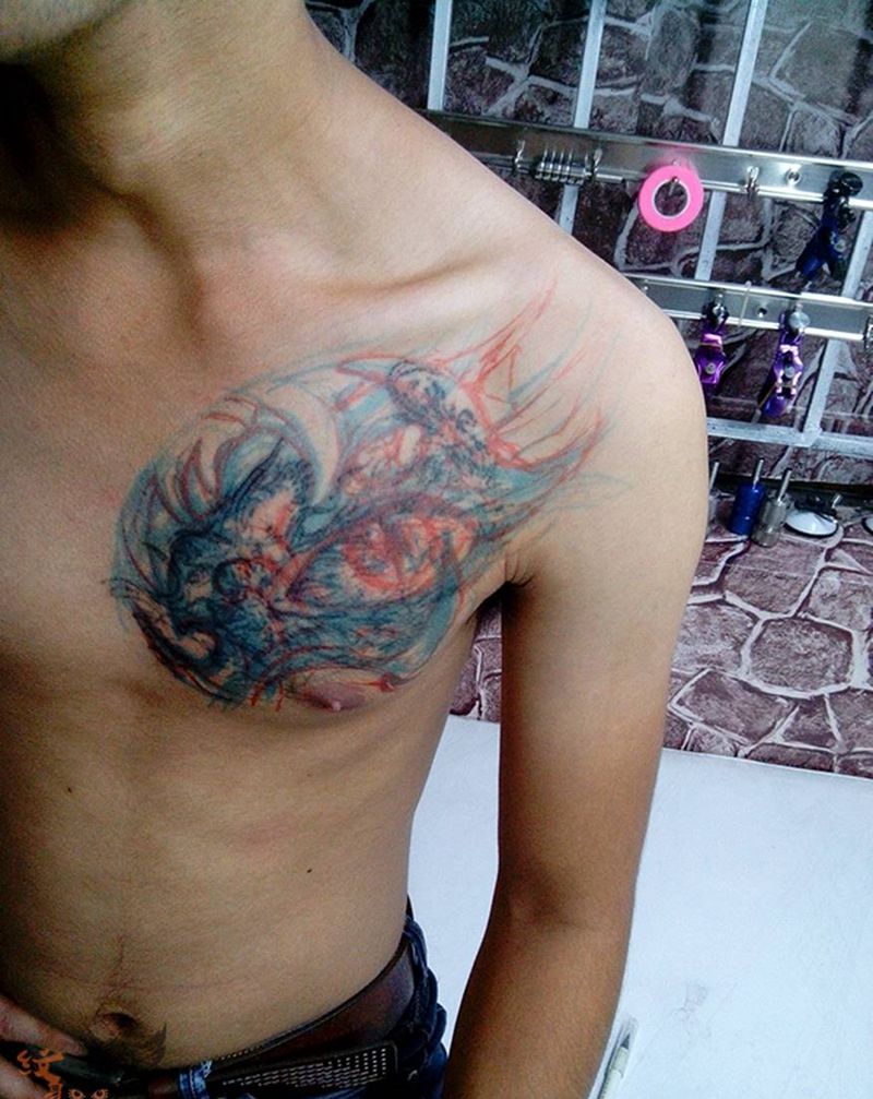 • 男性大花胸_42张优秀的男性大花胸纹身图案图片