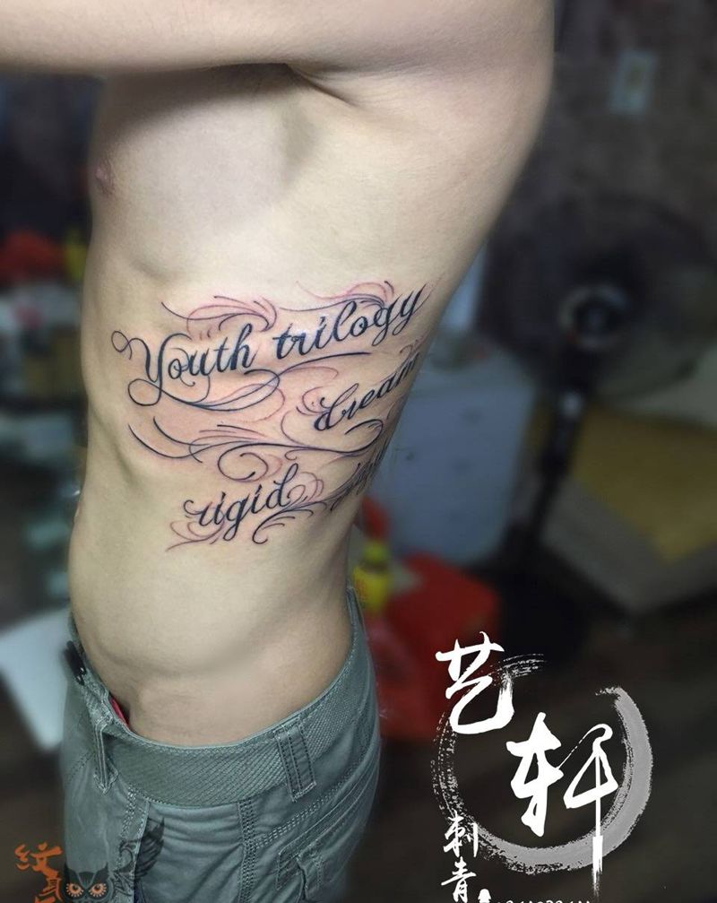 • T关于私处得爱!纹身图片_成品腹部清新字符图腾纹身图案