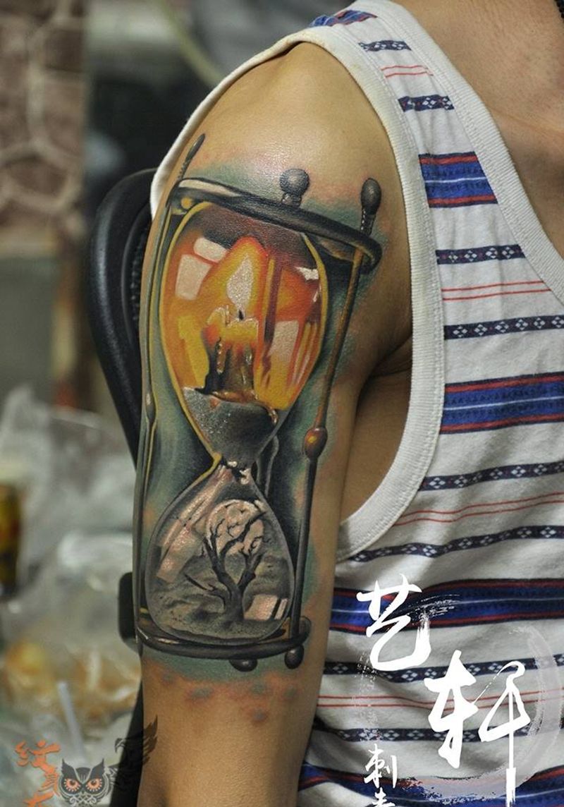 当前位置: 首页 >广东省深圳市纹身店-深圳南山艺轩纹身工作室纹身图案>沙漏作品纹身图片_欧美写实手臂纹身图案