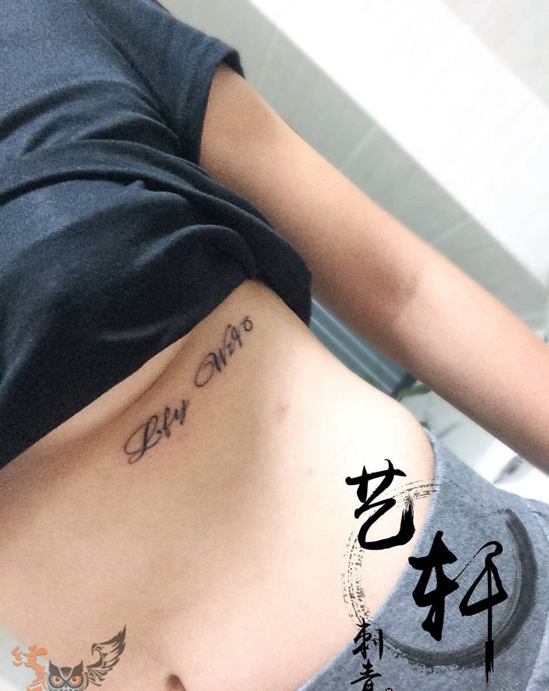 • T关于私处得爱!纹身图片_成品腹部清新字符图腾纹身图案