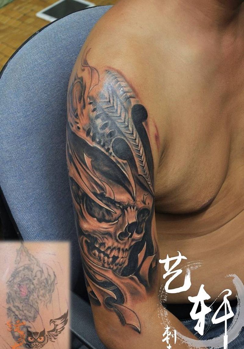 当前位置: 首页 >广东省深圳市纹身店-深圳南山艺轩纹身工作室纹身图案>骷髅头纹身纹身图片_欧美手臂纹身图案
