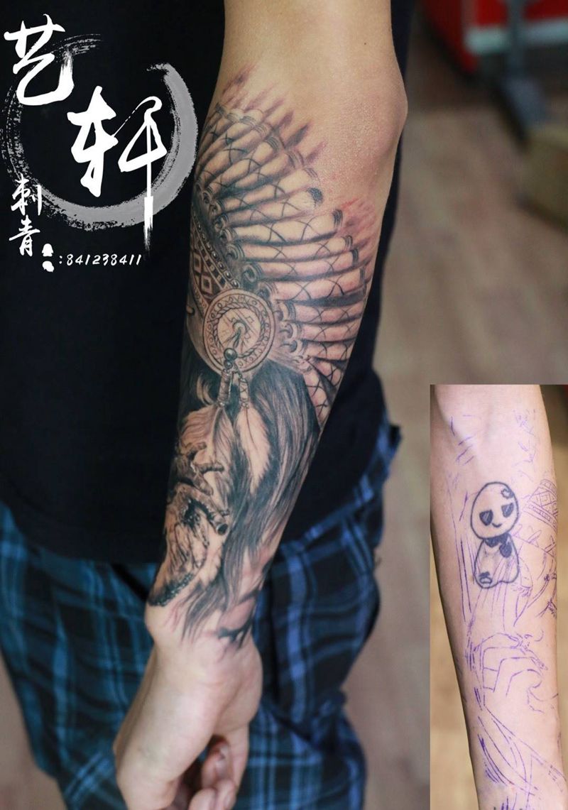 当前位置: 首页 >广东省深圳市纹身店-深圳南山艺轩纹身工作室纹身图案>印第安人遮盖失败纹身纹身图片