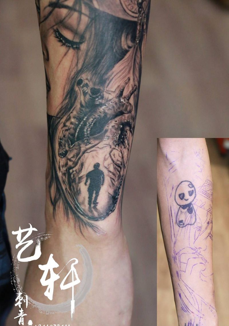 当前位置: 首页 >广东省深圳市纹身店-深圳南山艺轩纹身工作室纹身图案>印第安人遮盖失败纹身纹身图片