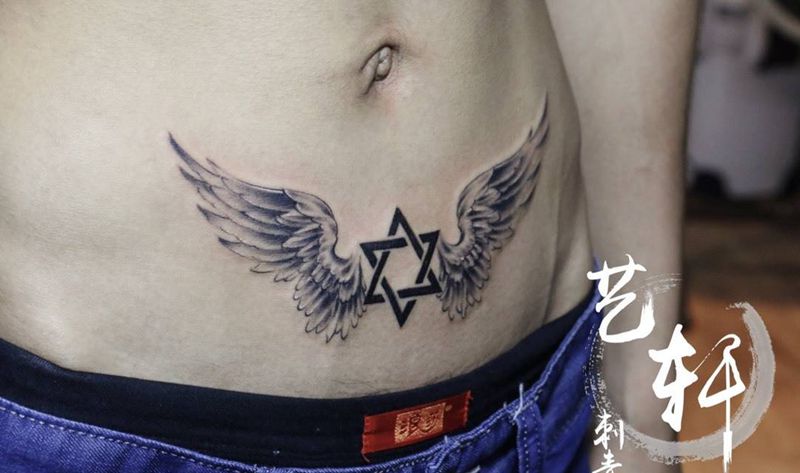 • T关于私处得爱!纹身图片_成品腹部清新字符图腾纹身图案