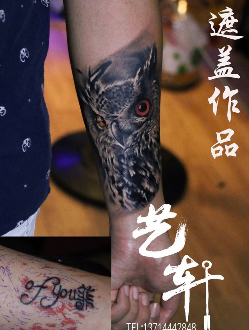 当前位置: 首页 >广东省深圳市纹身店-深圳南山艺轩纹身工作室纹身图案>猫头鹰遮盖作品纹身图片_欧美手臂动物纹身图案