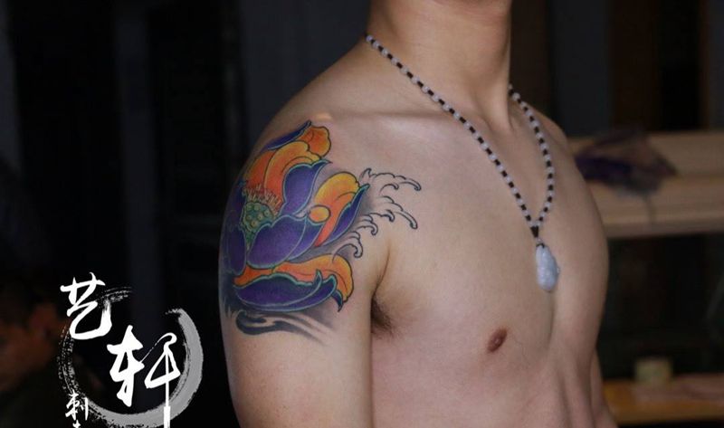 当前位置: 首页 >广东省深圳市纹身店-深圳南山艺轩纹身工作室纹身图案>荷花遮盖作品纹身图片_成品手臂传统植物纹身图案