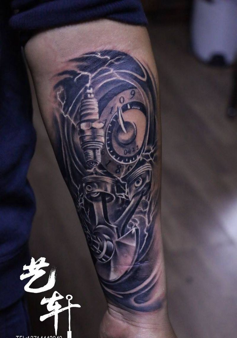 发动机纹身图片_成品手臂欧美写实纹身图案