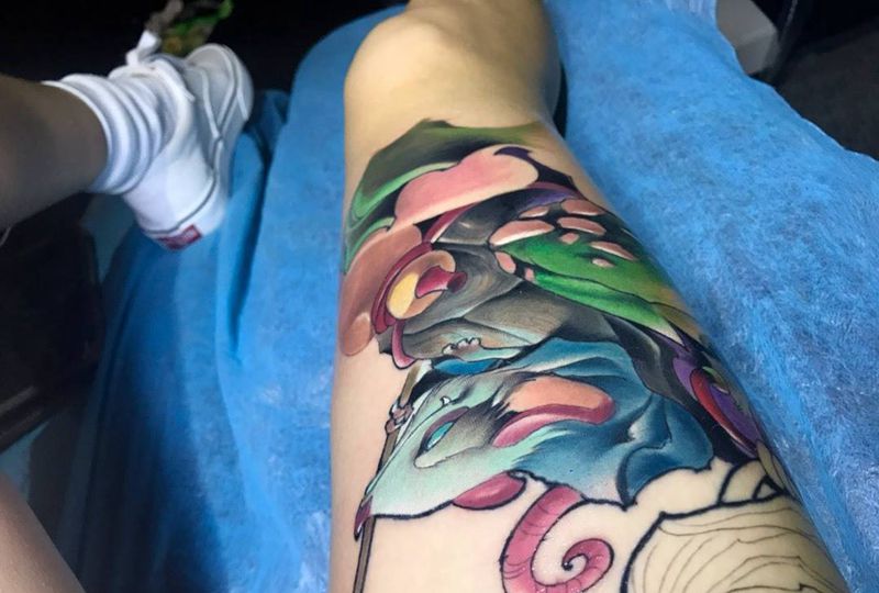 • T网红王老大花腿龙纹身图片_腿部新传统纹身图案