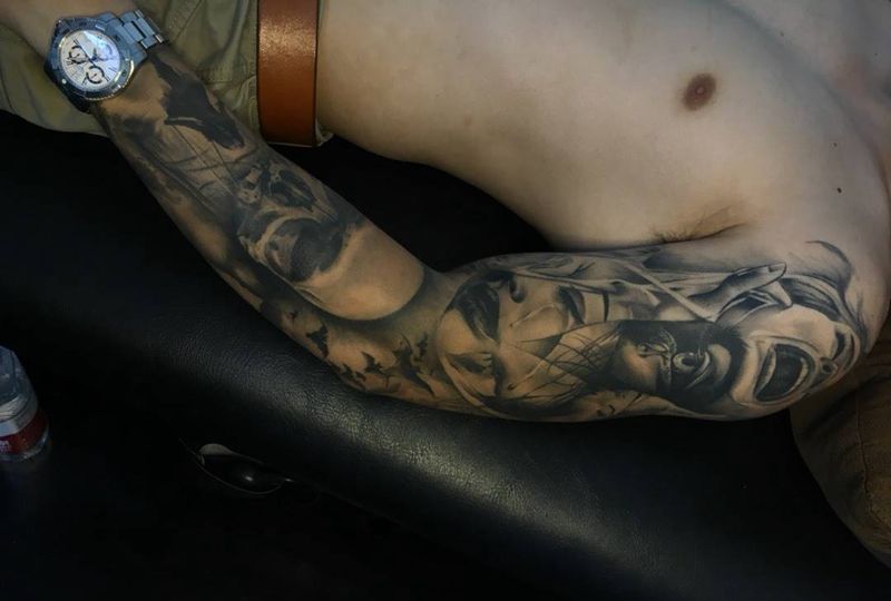 当前位置: 首页 >广东省深圳市纹身店-深圳南山艺轩纹身工作室纹身图案>欧美花臂纹身图片_成品手臂欧美人物纹身图案