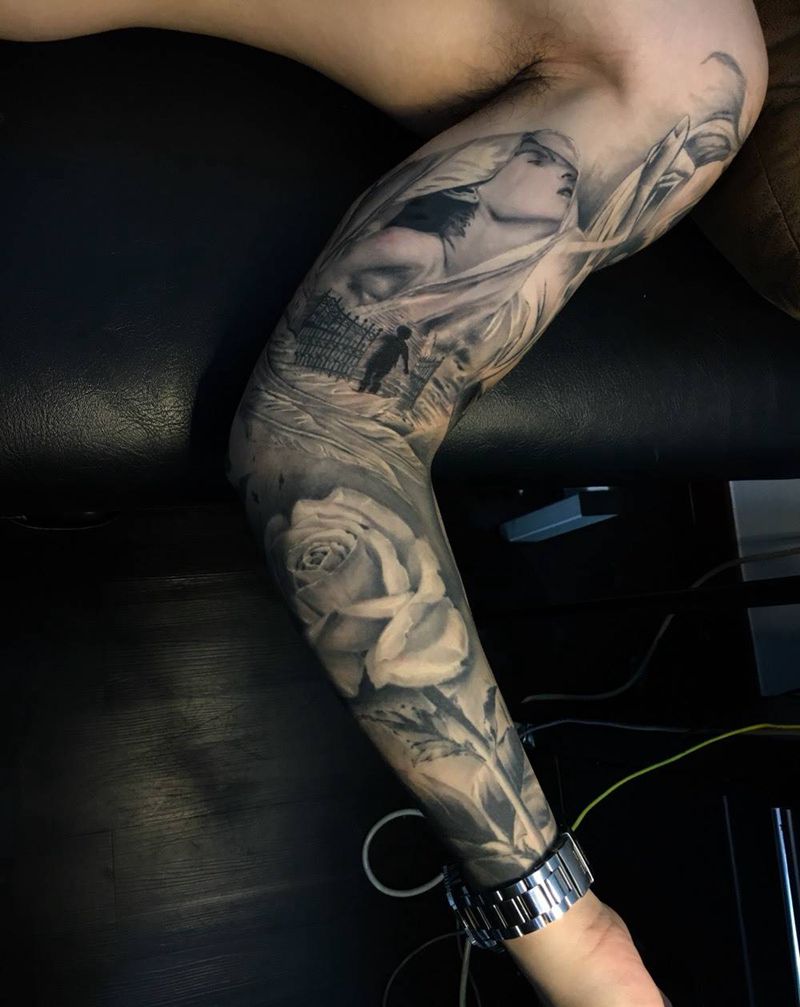 当前位置: 首页 >广东省深圳市纹身店-深圳南山艺轩纹身工作室纹身图案>欧美花臂纹身图片_成品手臂欧美人物纹身图案