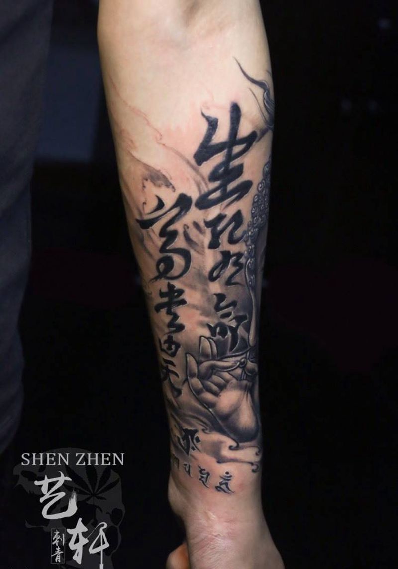当前位置: 首页 >广东省深圳市纹身店-深圳南山艺轩纹身工作室纹身图案>修改加包小臂纹身图片_成品手臂传统鬼神纹身图案
