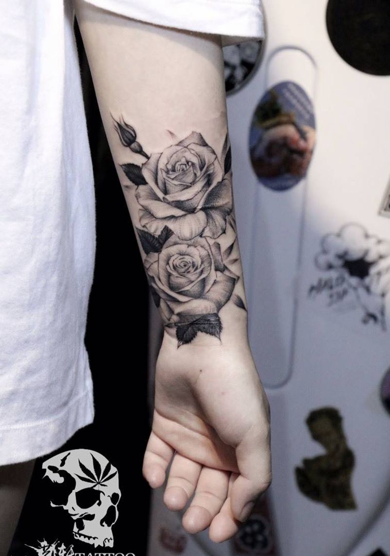 点刺玫瑰纹身图片_成品手部清新静物纹身图案