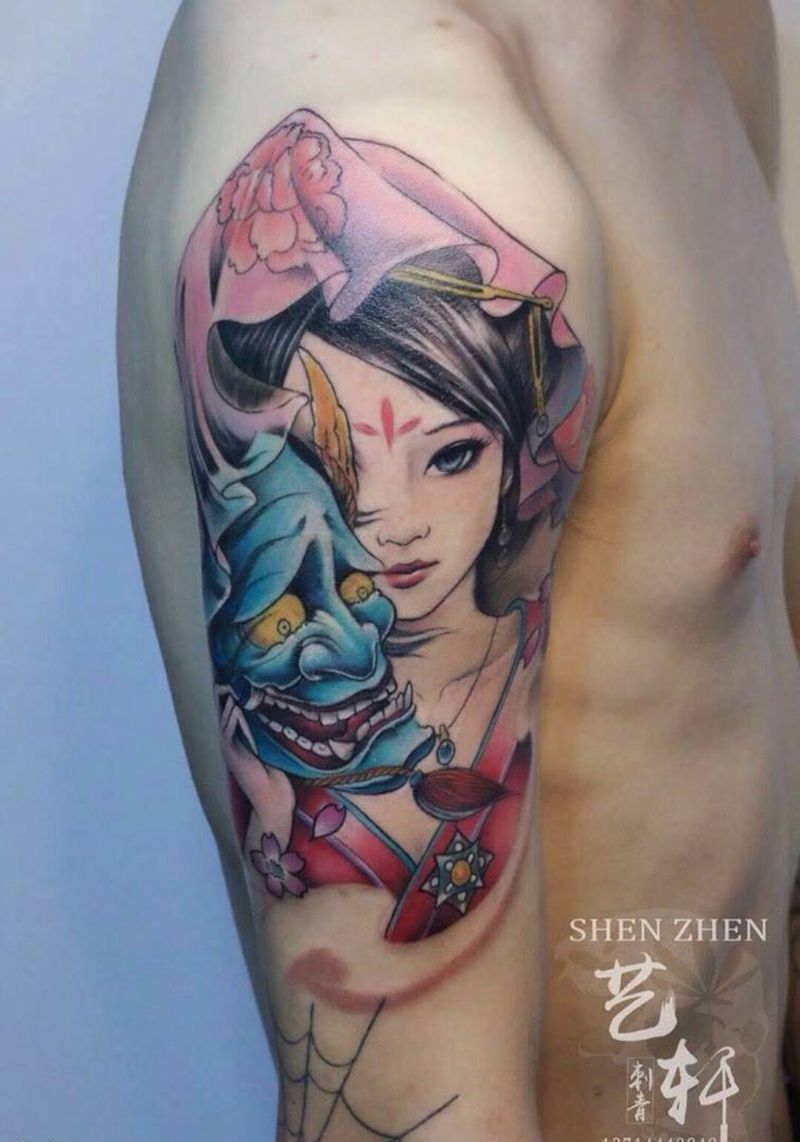 当前位置: 首页 >广东省深圳市纹身店-深圳南山艺轩纹身工作室纹身图案>艺妓纹身图片_成品手臂传统鬼神纹身图案