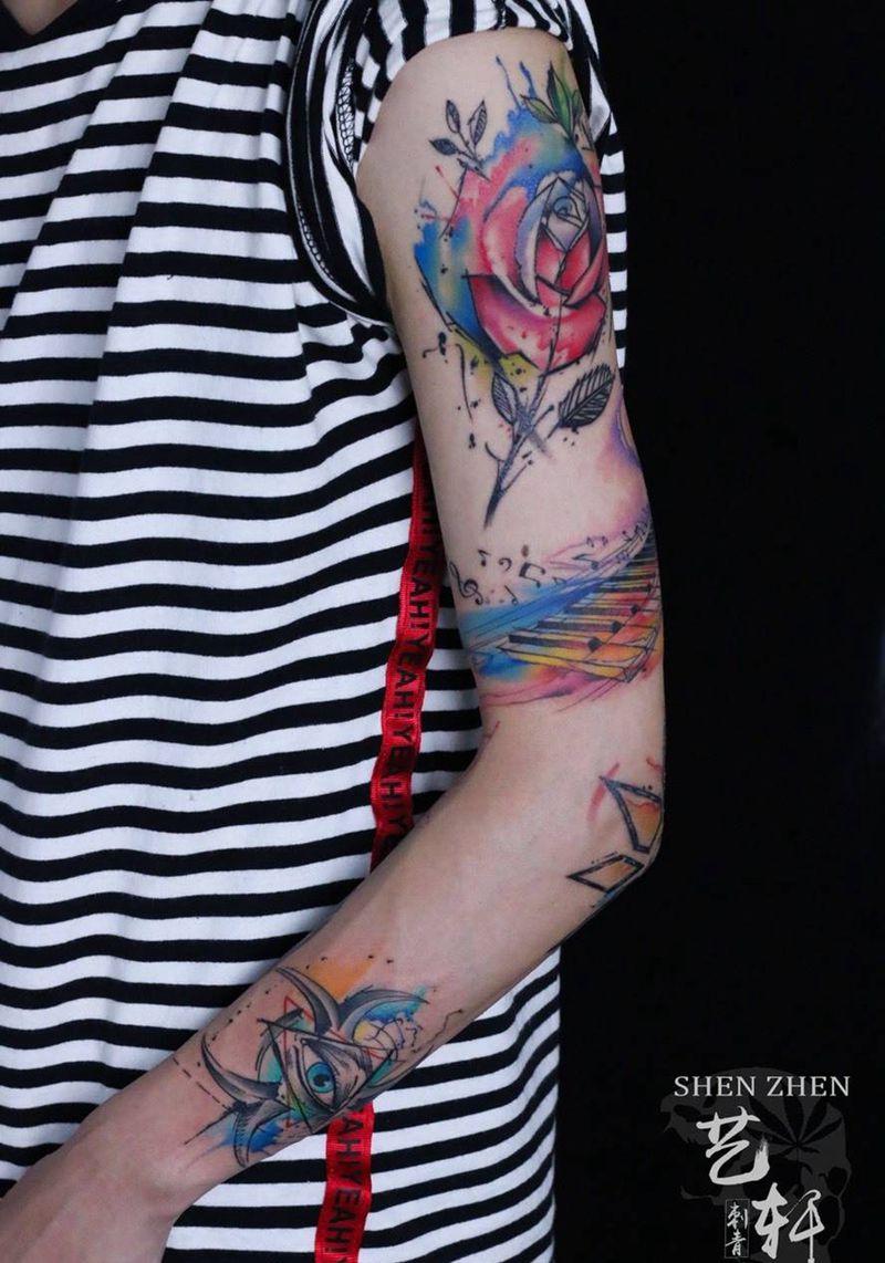 当前位置: 首页 >广东省深圳市纹身店-深圳南山艺轩纹身工作室纹身图案>彩色画臂纹身图片_成品手臂习俗静物纹身图案