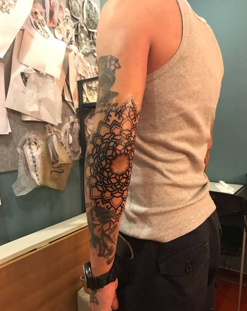曼陀罗纹身图片_成品手臂几何纹身图案
