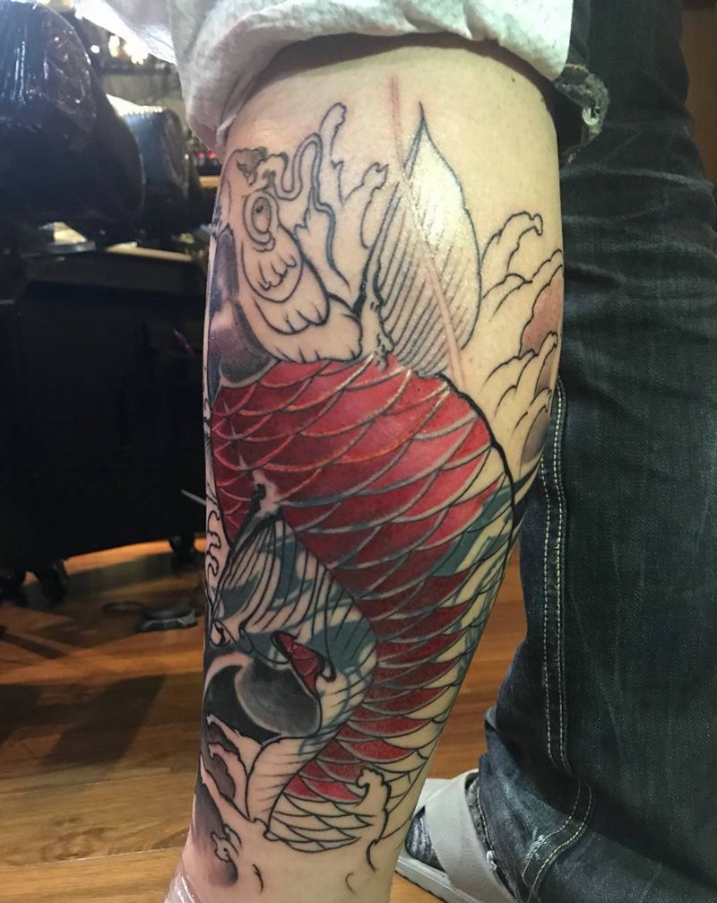 • T网红王老大花腿龙纹身图片_腿部新传统纹身图案