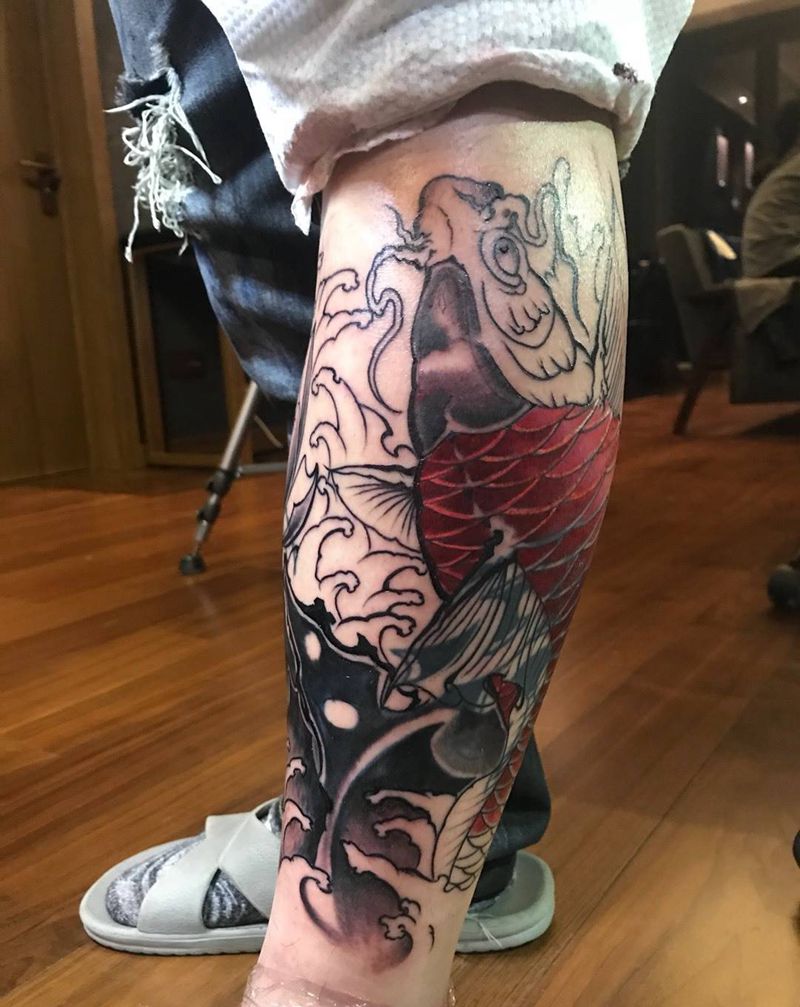 • T网红王老大花腿龙纹身图片_腿部新传统纹身图案