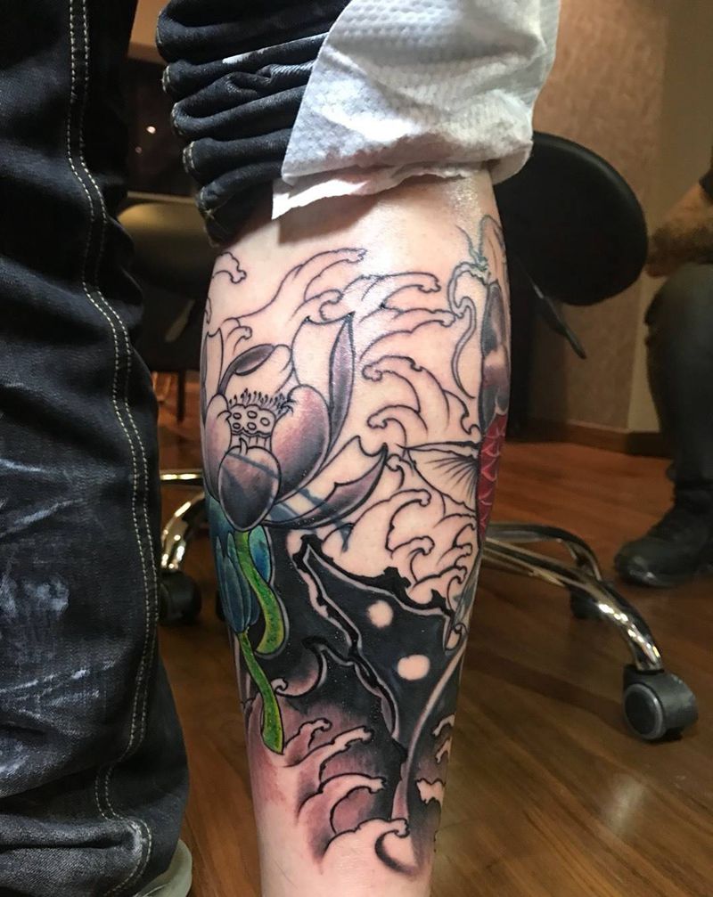 • T网红王老大花腿龙纹身图片_腿部新传统纹身图案