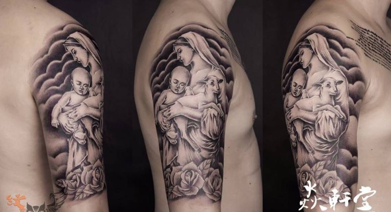 • 纹身吧推荐的披肩图腾半胛纹身图案作品展示