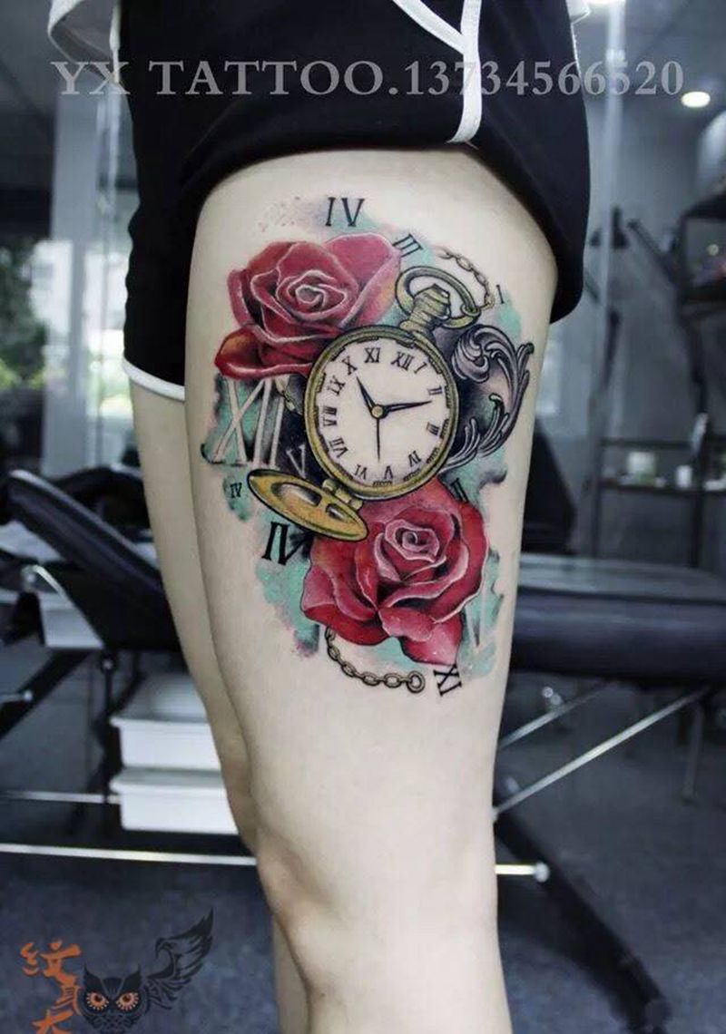 • 手背潮流时尚的玫瑰花眼睛纹身图案