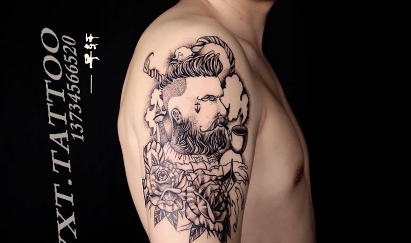 • 纹身吧推荐的披肩图腾半胛纹身图案作品展示