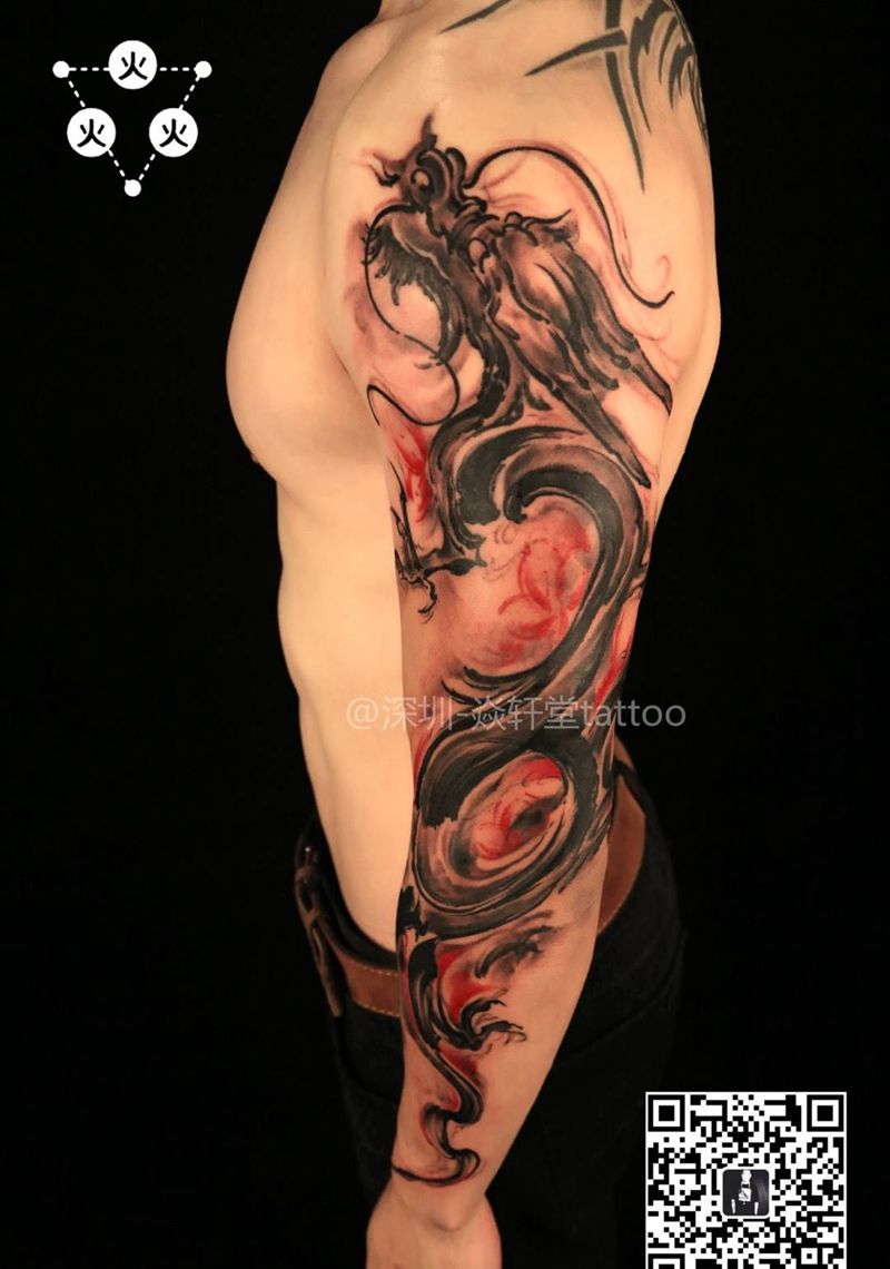 当前位置: 首页 >广东省深圳市纹身店-焱轩堂刺青艺术有限公司纹身图案>水墨龙纹身图片_传统国画习俗动物鬼神原创手臂成品手稿纹身图案