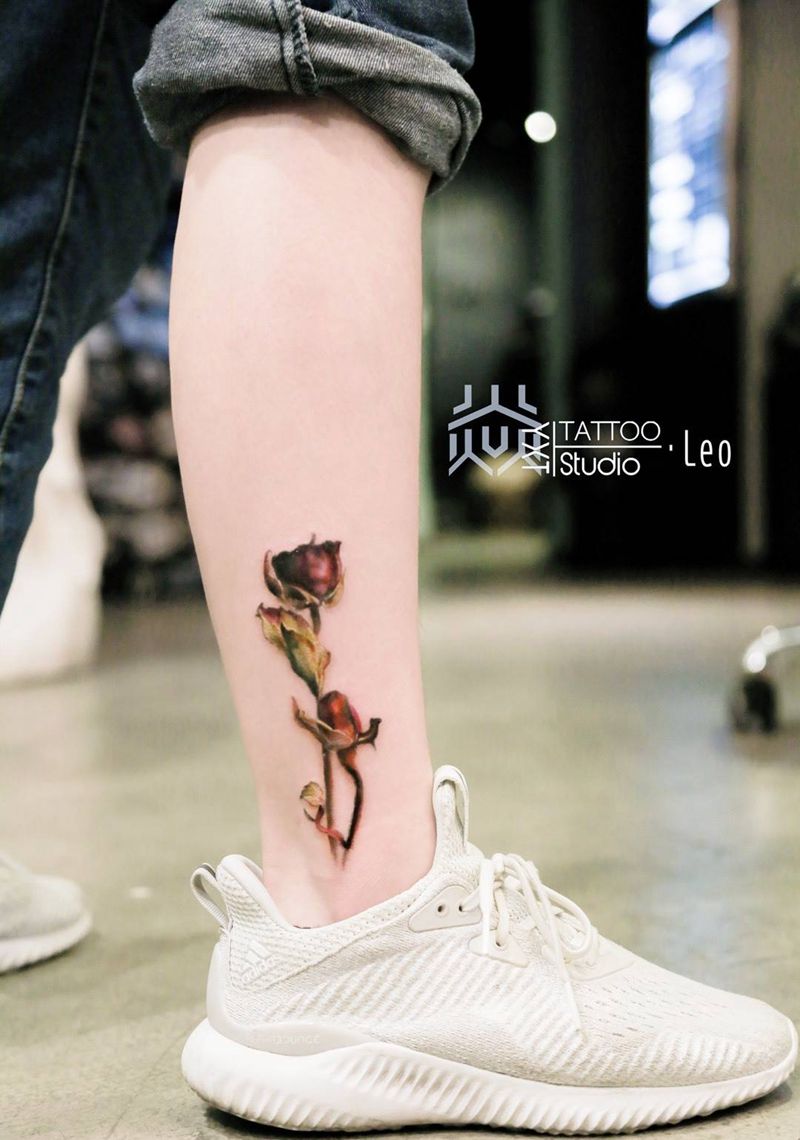 • T网红王老大花腿龙纹身图片_腿部新传统纹身图案
