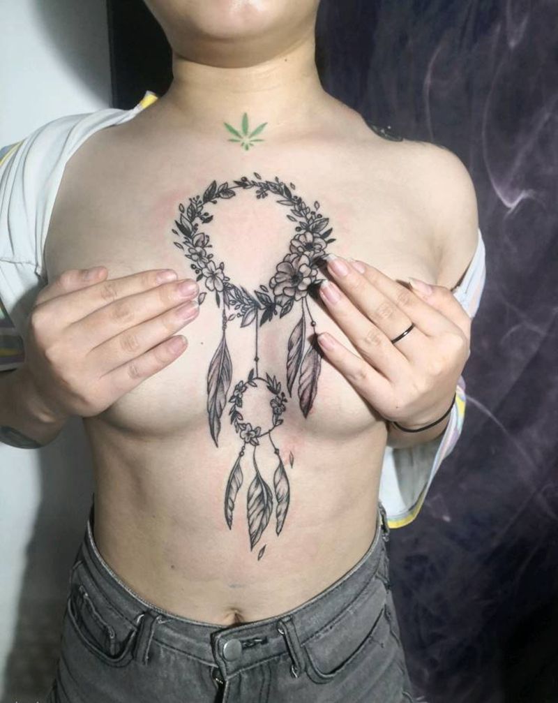 捕梦网纹身图片_胸部欧美写实纹身图案